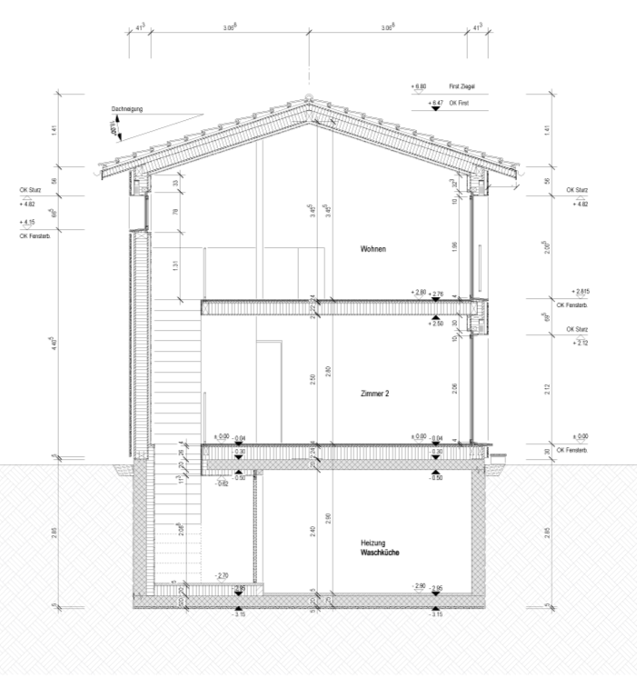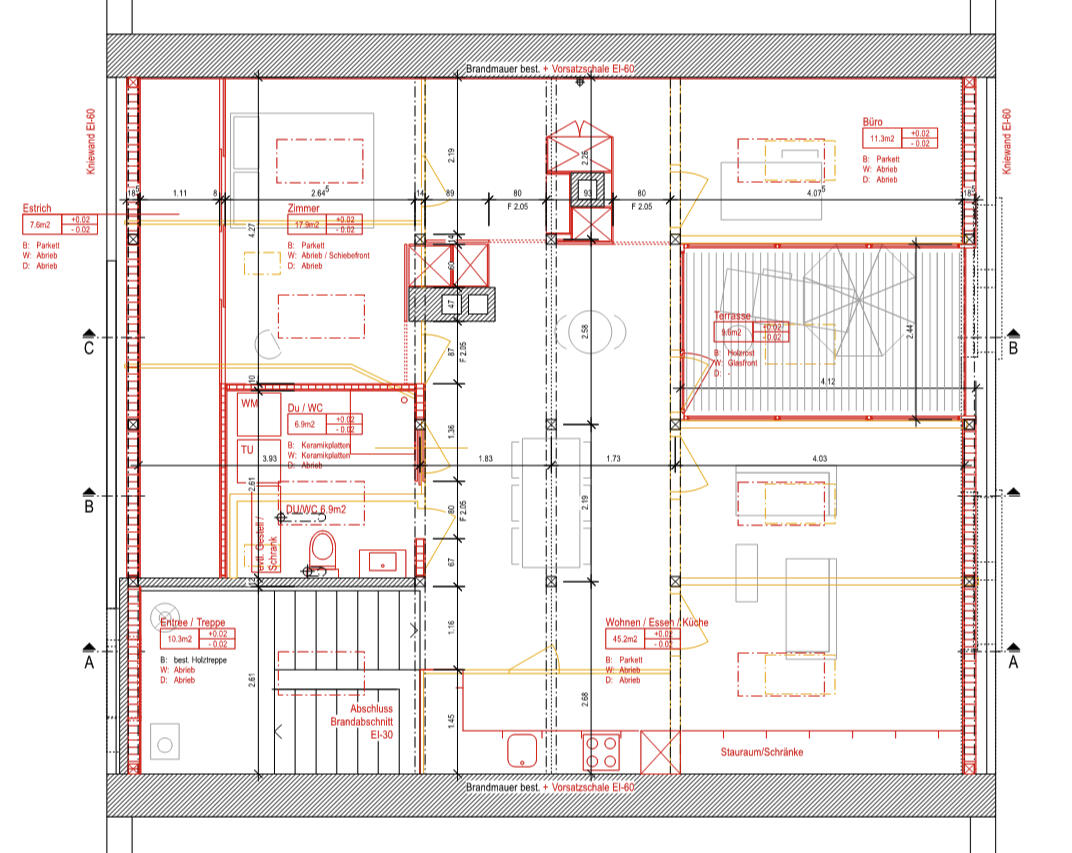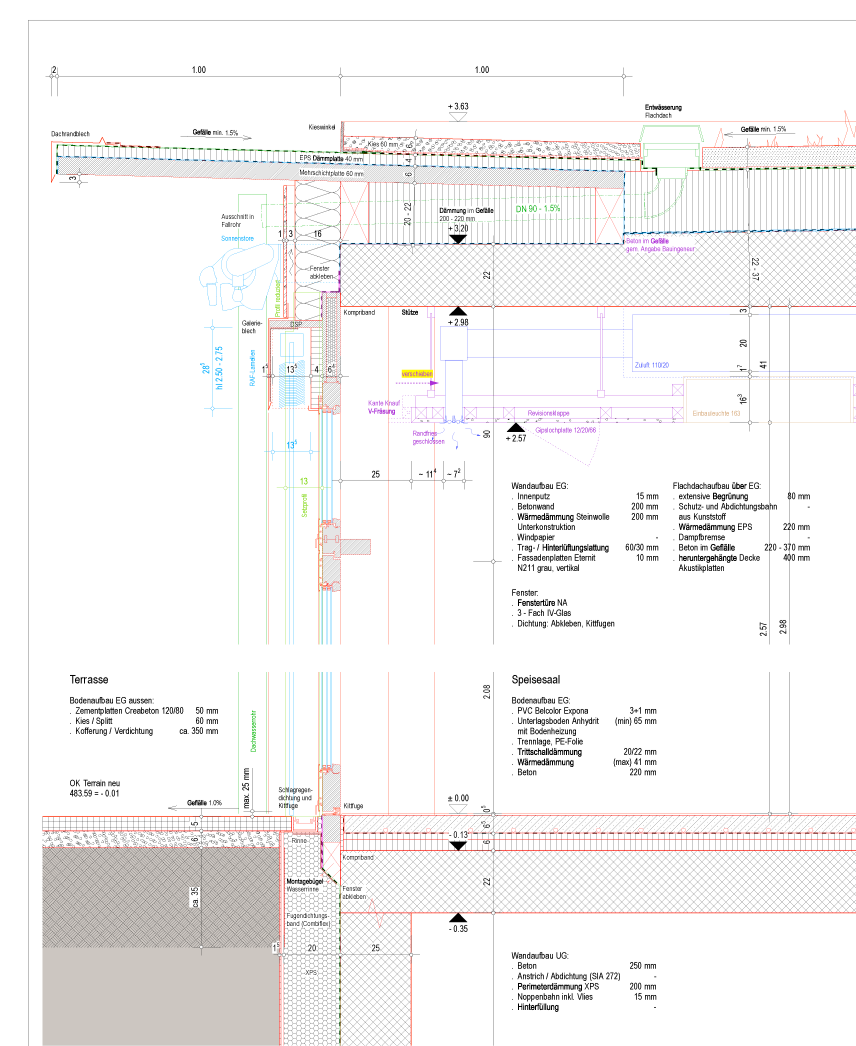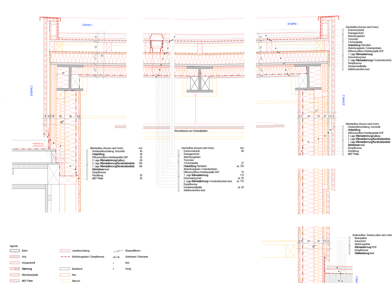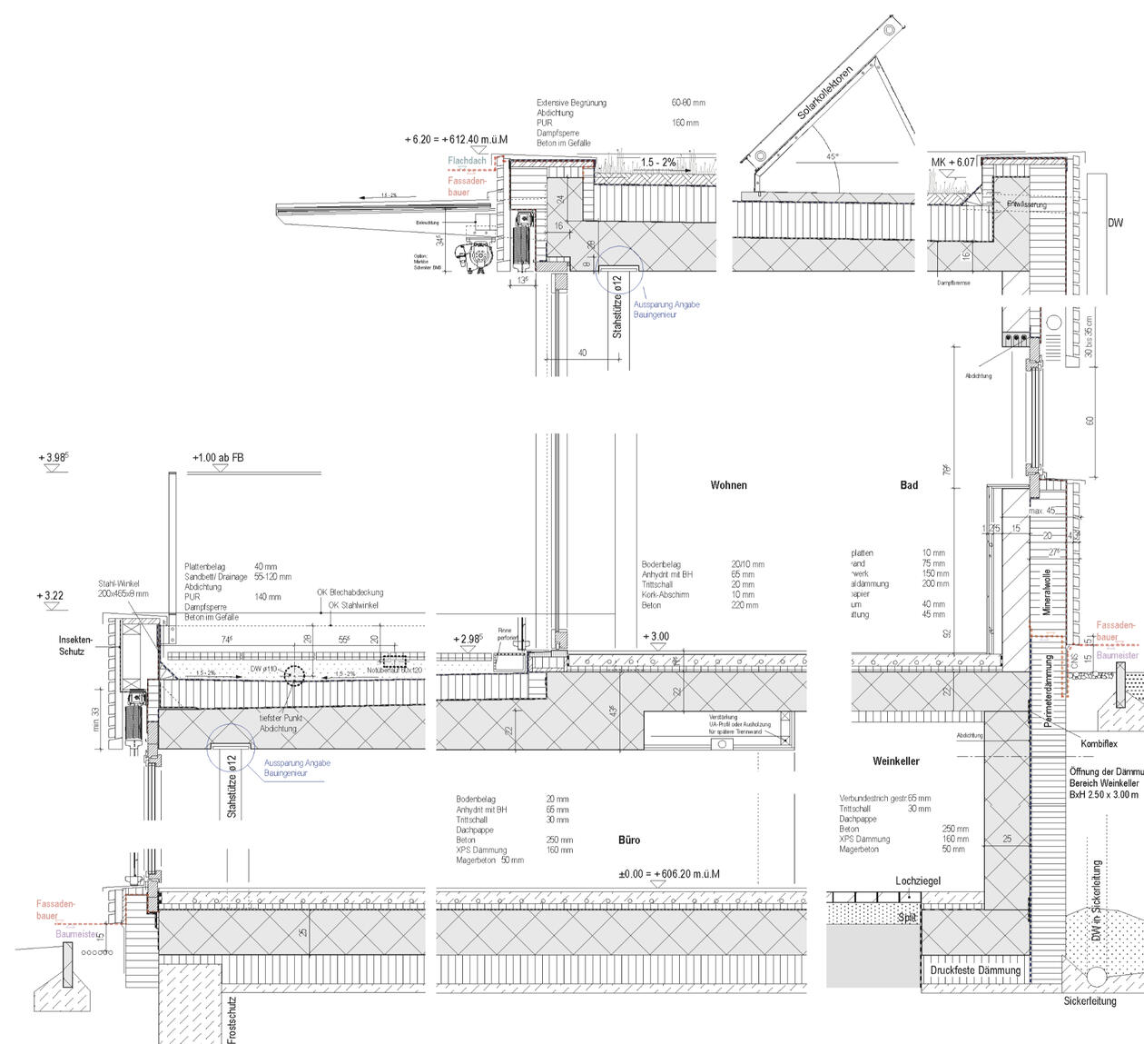 Section 1:50 and 1:20 of a family house. © 2013 m+b architekten